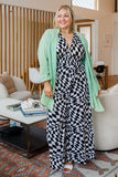 The Osborn Wide Leg Patterned Jumpsuit is the ultimate statement piece. Featuring a smocked waist, wide leg, and deep V-neck, this jumpsuit flatters your silhouette. The ruched dolman sleeves add a touch of drama, while the open back with tie detail adds a hint of sultriness. The black and white geometric print is both timeless and on-trend, making this jumpsuit a versatile addition to your wardrobe.