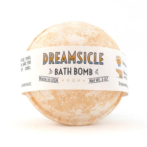 5 oz. | Our bath bombsย are made with the same non-staining organic coloring and all hypoallergenic ingredients as our Bubble Rubbles, but with more fizz and fewer bubbles. Dreamsicle- Creamy orange with sweet vanilla notes.ย Place gentlyย into warm bath water to create the best bath time experience.