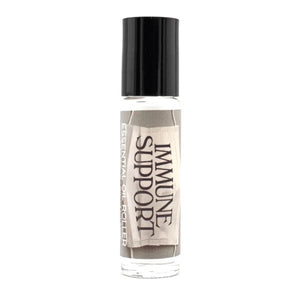 10 ml. | Immune Support Essential Oil Roller strengthens immunity and constitution with lemon, sage, orange, and chamomile suspended in an organic coconut oil base. Apply to wrists, temples, chest and/or back of neck as needed. Our roller bottle is glass with a plastic roller/applicator.
