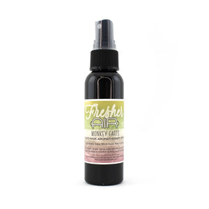2 oz. | The only thing better than fresh air is Fresher Air. Our face mask aromatherapy sprays are purse essentials that will help you de-stress, unwind, relax, perk up, or focus during these trying times. Monkey Farts- This smells of banana, strawberry, kiwi, grapefruit and vanilla.ย Just shake, spray onto the outside of your favorite mask, and then give a few minutes to dry. Your face mask is instantly transformed from a responsibility to a source of comfort and joy while you do your shopping and errands. Our travel size fine mist bottle is sturdy and BPA free.