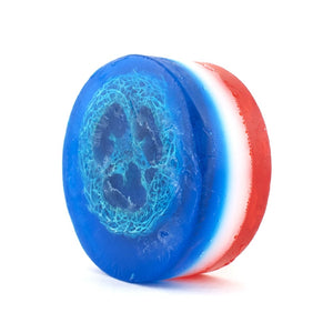 4.5 oz. |ย Our organic soaps with loofah inside will exfoliate your skin and keep it baby smooth. Bomb Pop- Sweet fresh squeezed lemonade with the perfect blend of cherries.ย Wet Loofah Soap and rub between hands or on an area of your body. Use loofah surface and varying pressure for the desired exfoliation.
