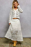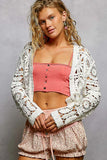 POL Button Down V-Neck Long Sleeve Cropped Crochet Cardigan