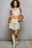 The 3/4 sleeve roomy fit open style cardigan is designed in crochet with a charming granny square pattern weave and outseaming details. This uniquely crafted cardigan combines a relaxed fit with intricate crochet work, giving it a bohemian and artisanal feel. The granny square pattern adds a nostalgic touch, while the outseaming highlights its handmade quality. Perfect for layering over casual outfits, this cardigan adds a stylish and cozy element to your look. Embrace the handmade charm with this beautifully detailed crochet cardigan that exudes effortless style and comfort.