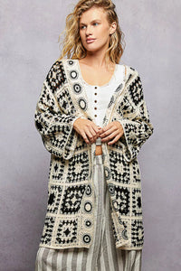 POL Open Front Crochet Cardigan with Granny Square Pattern