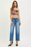 RISEN Elastic Band Slouch Ankle Boyfriend Cuffed Hem Jeans