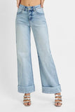 RISEN Full Size Tummy Control High Rise Ankle Wide Cuffed Jeans