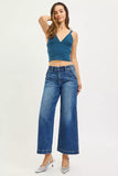 RISEN High Rise Wide Leg Jeans With Pocket Button Detail
