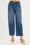 RISEN Slouchy Cropped Baggy Jeans with Front Patch Pocket