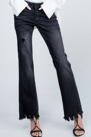 ESB Asymmetrical Distressed Hem Bootcut Jeans