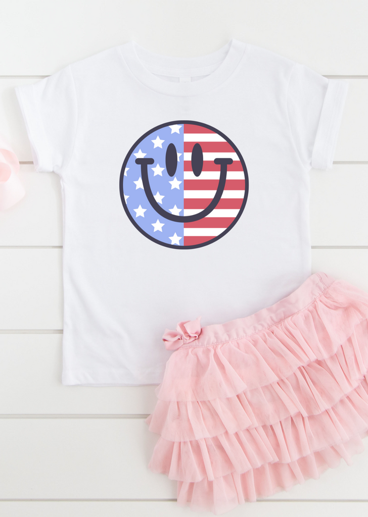 Add some sunshine to your little one's wardrobe with our All Smiles KIDS tee! This graphic tee features a playful smiley face flag, perfect for spreading joy and good vibes. Made with high-quality materials, it's sure to bring a smile to both kids and parents alike.