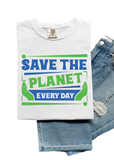 Join the movement with our Save the Planet Comfort Colors T-Shirt. Featuring a playful "Save the planet everyday" graphic, this tee allows you to make a statement while also being environmentally conscious. Show your quirky side and support a good cause with this tee!