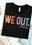 Join the cool crowd with our We Out.. Teachers T-Shirt. Show off your humor with this quirky tee that will make any teacher stand out in style. Say goodbye to boring outfits and hello to a fun and playful look. Perfect for a casual day out or a school event!