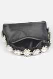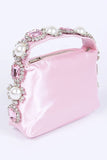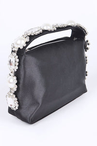 Embellished Top Handle Satin Soft Clutch