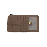 This slim and sleek card wallet has 9 credit card pockets, an ID window, zippered change pocket and zippered billfold pocket all in casual distressed Vegan Leather available in a kaleidoscope of beautiful colors.