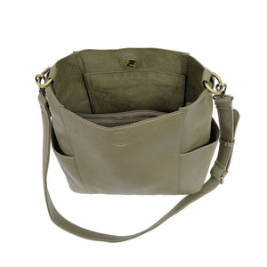Joy Susan Kayleigh Side Pocket Bucket Bag in Sage