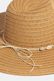 This stylish wide-brim straw hat combines classic elegance with modern bohemian flair. Crafted from high-quality natural straw with expert weaving techniques, it features a distinctive shell-adorned band that adds a coastal charm. The generous brim provides excellent sun protection while maintaining a lightweight, breathable feel perfect for all-day wear. The adjustable inner band ensures a comfortable fit for various head sizes. Ideal for beach vacations, garden parties, or casual summer outings, this hat effortlessly elevates any outfit with its timeless appeal and artisanal craftsmanship.