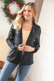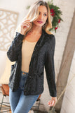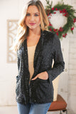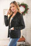 Black Sequin Lapel Collar Pocketed Holiday Jacket