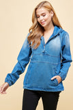 Ladies Denim Jacket with Hoodies with drawstring