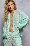 POL Exposed Seam Button Down Hooded Jacket with Lace Detail