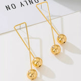 Modern Geometric Triangle Gold Ball Drop Earrings