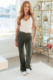 Introducing On the Move V Front Flare Leggings! Our buttery soft fabric combines with a flattering tapered V-front yoga waistband to provide a stylishly comfortable look that's perfect for any activity. Featuring a flared silhouette and side pockets, these leggings are a must-have for any wardrobe.