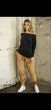 Black Ribbed Crop Top And Wide Leg Pants Set esb