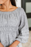 Be garden party ready in the All Is Well Dress! In a stunning opal gray, with lavender undertones this dreamy dress has a unique floral design that decorates a Chiffon overlay, shaped by an optional off shoulder cut. The elastic at the waistband and ruching in the back. This stunning midi dress also features a peasant sleeve, and elastic all around the neckline. Pair this dress with your favorite heels and shoulder bag for an elegant look!