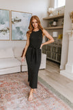 Out on the Town Tie Detail Midi Dress in Charcoal