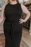 You'll be ready for a night out in this Out on the Town Tie Detail Midi Dress! It features a high neckline, sleeveless cut, midi-length, and front tie detail to keep things interesting. Ready for some fun? Just throw on this sassy number and get out there! The side slits give this dress some serious swagger. Get ready to turn heads and slay the night away!