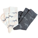 Introducing our Bow Minimalist Socks Set of 2, perfect for those looking for a touch of elegance in their wardrobe. With a simple and chic design and scattered bows, these socks are the perfect addition to any outfit. The neutral colors in this set make it versatile and easy to pair with any look. Elevate your style with our premium trouser socks.