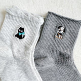 Step into a world of playful charm and cozy style with the Cat And Dog Design Crew Socks Set of 2. These delightful socks celebrate your love for furry friends with a whimsical cat and dog, adding a fun, lighthearted twist to your everyday look while keeping your feet wrapped in comfort.