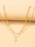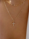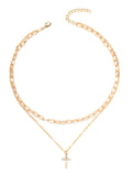 Double Layered Inlaid Zircon Cross Pendant Necklace
