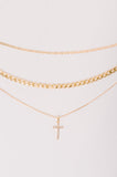 Stack your faith with style in this Layered Faith Necklace, a gold-plated stunner that celebrates your beliefs in the most chic way possible. Three distinct chains work together in perfect harmony—a flat mariner chain, a trendy paperclip chain, and a delicate dainty chain—each with adjustable extenders for the perfect fit. The sparkling pavé cross pendant adds spiritual sparkle and serves as the focal point of this multi-layered masterpiece. Secured with a reliable lobster clasp, this necklace is ready to become your go-to accessory for everyday inspiration.