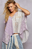 POL Asymmetrical V-Neck Short Sleeve Lace Top