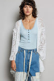 POL Openwork Lightweight Open Front Cardigan with Scalloped Edge