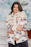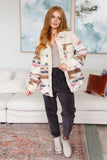 Stay cozy and stylish in our Sedona Sunset Shacket. This must-have item features a sherpa fleece panel, classic brushed Aztec patterned woven fabric, and side pockets. Button front closure keeps you snug in the mid to heavy-weight fabric, while the pockets provide convenience. Make a statement with our Sedona Sunset Shacket!
