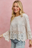 SO ME Floral Embroidered Crochet Lace Trimmed Top