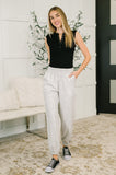 Elevate your loungewear game with these Every Second, Every Hour Jogger Bottoms. Crafted from premium scuba fabric with high stretch for maximum comfort and mobility, these joggers feature a cased elastic waistband and hem for a secure, polished fit. Functional side pockets keep your essentials within reach, while the front center seam and exposed seam details add contemporary flair. Perfect for relaxing at home or running errands in style.