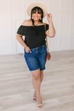 “Jump in that water be free. Come south of the border with me.” Ed Sheeran’s hit makes me want to head to Costa Rica in this sweet sexy must-have top. It is sublimely soft & stretchy and features an elasticized off-the-shoulder double ruffle.