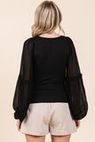 Mittoshop Mixed Media Textured Knit Chiffon Long Sleeve Top