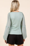 Mittoshop Mixed Media Textured Knit Chiffon Long Sleeve Top