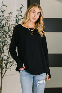 The Nice to Each Other Raglan Sleeve Top brings comfort and charm in a stretchy jersey knit that moves with you. Bold raglan sleeves with exaggerated cuffs and practical thumb holes make this top as functional as it is fun. A scooped hemline, exposed seam details, and playful back faux tag give it personality, while the banded round neckline keeps things classic. Layer it or wear it solo—this Kelly Green essential spreads positivity with every wear.