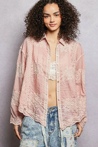 POL Embroidery Button Down Long Sleeve Shirt