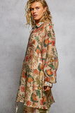 This roomy fit shirt top showcases a stylish woven print with a vibrant floral pattern for a chic and feminine look. The metal button-down front adds a touch of sophistication to the design. A convenient front pocket enhances functionality while adding a trendy detail. The normal washing process ensures easy care and maintenance of the top. Embrace the charm of the floral pattern and versatile styling options with this fashionable and comfortable shirt top.
