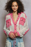 POL Texture Woven Button Down Hooded Shirt with Drawstring Hem