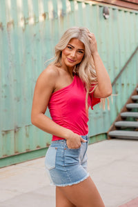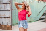 This top is so sassy! That one shoulder neckline is very feminine and we love the asymmetrical contrast of one flutter sleeve and sleeveless on one side. The knit fabric is super soft too! This top features a semi fitted one shoulder top with bell sleeve on one side and elastic sides. Pair the So One Sided Knit Top with your favorite jeans and sleek heels for the perfect date night outfit.