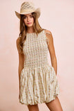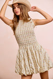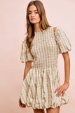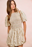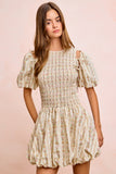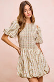 BiBi Floral Bow Tie Attachable Puff Sleeves Dress