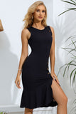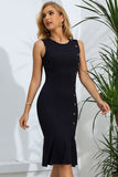 Decorative Button Split Ribbed Sleeveless Knit Dress