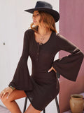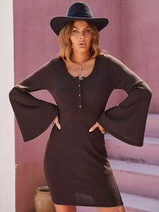 Flare Sleeve Button Front Bodycon Dress