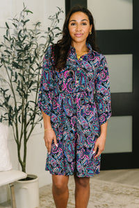 Inspire Collared Dress in Black and Cool Paisley